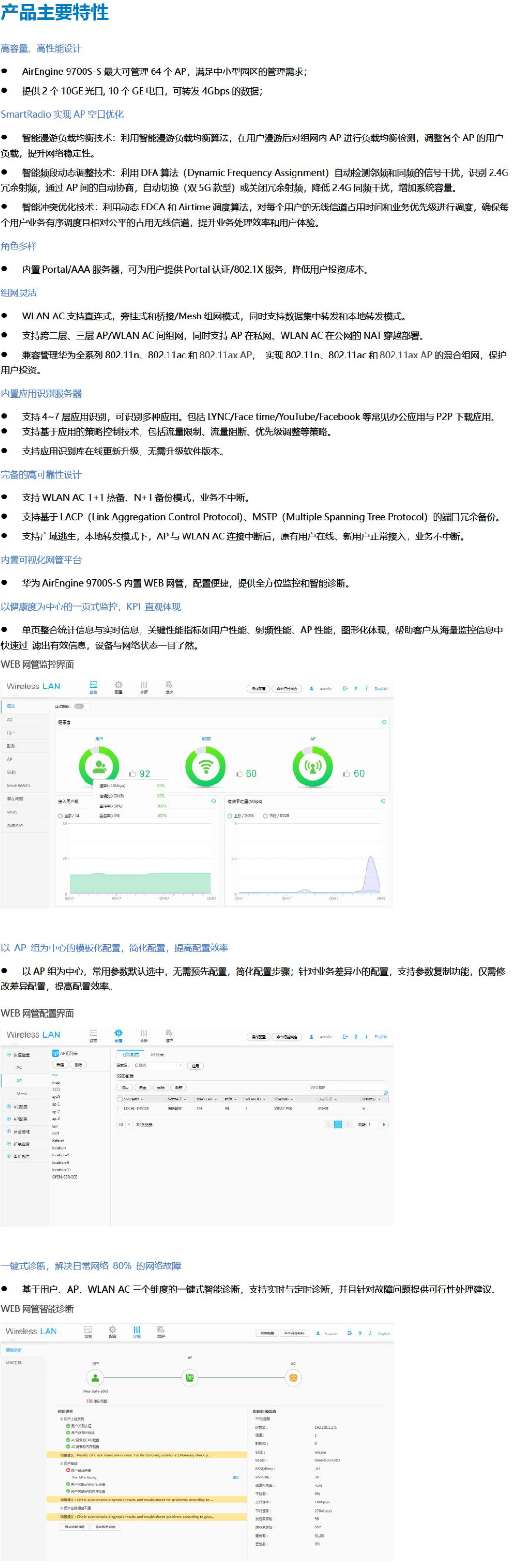 AirEngine 9700S-S是華為推出的面向中小型企業(yè)的小型盒式無線接入控制器(Access controller),最大可管理64個AP,同時集成千兆以太網(wǎng)交換機(jī)功能,實現(xiàn)有線無線一體化的接入方式??伸`活配置無線接入點的管理數(shù)量,具有良好的可擴(kuò)展性。配合華為全系列802.11n/802.11ac/802.11ax無線接入點,可組建中小型園區(qū)網(wǎng)絡(luò)、企業(yè)辦公網(wǎng)絡(luò)、無線城域網(wǎng)絡(luò)、熱點覆蓋等應(yīng)用環(huán)境。